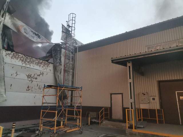 В результате атаки загорелся склад с лаками и красками. А над городом образовались тучи черного дыма.