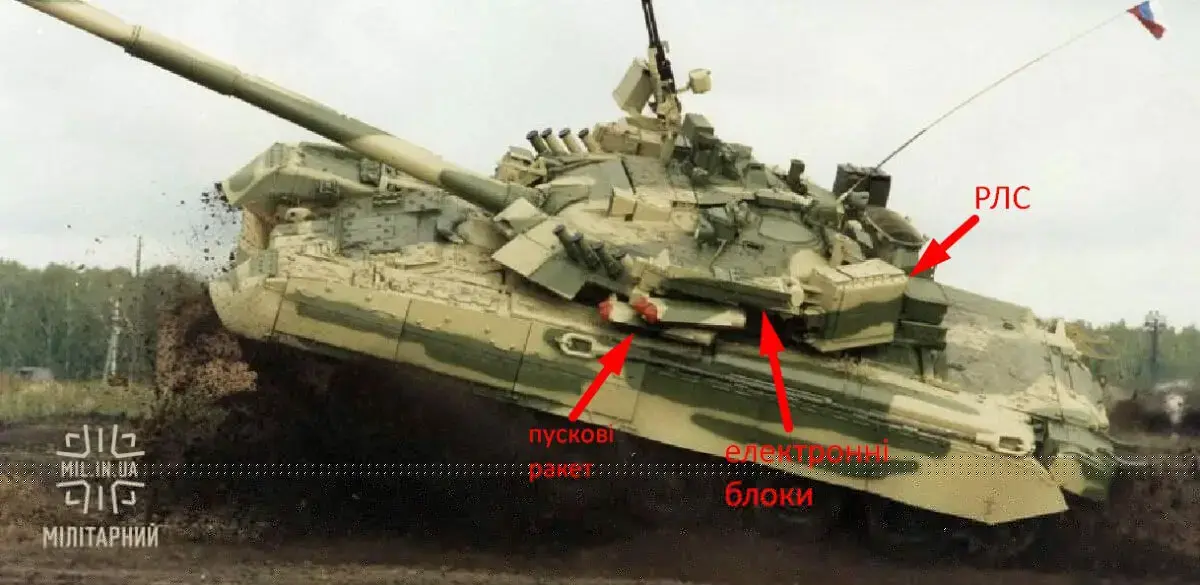 На фото с уничтоженной российской техникой обнаружили именно Т-80У. Этот танк оснащен системой активной защиты, которая должна перехватывать летящие в танк снаряды. Она называется “Дрозд”.
