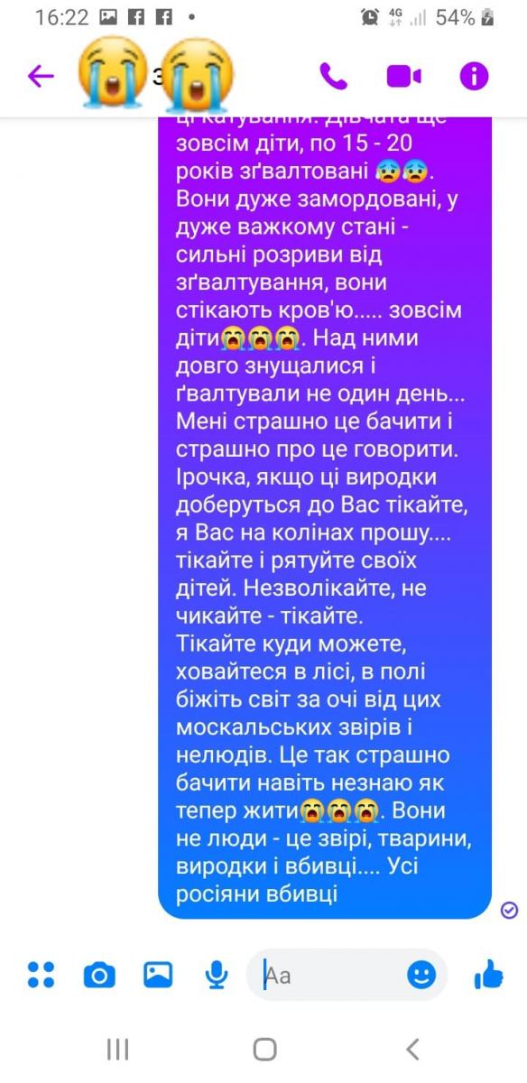 По словам этой женщины, оккупанты неоднократно насиловали этих девушек, у них остались следы жестокого обращения.