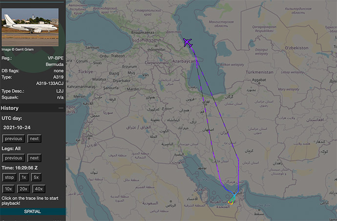 Начнём с последнего визита. 26-го февраля этого года самолет Кадырова на один день посетил Дубай.