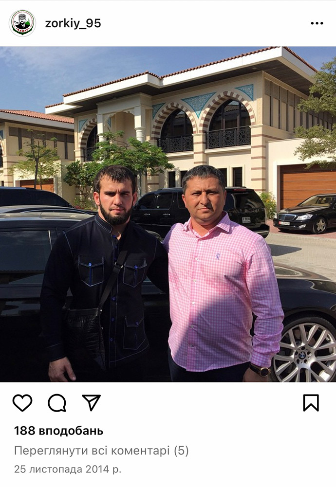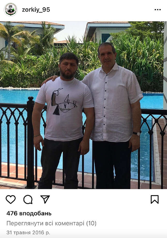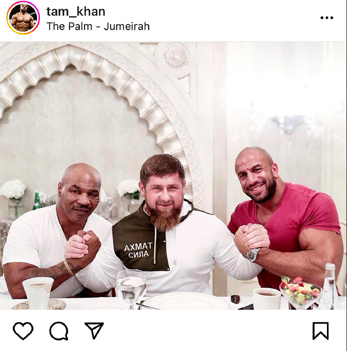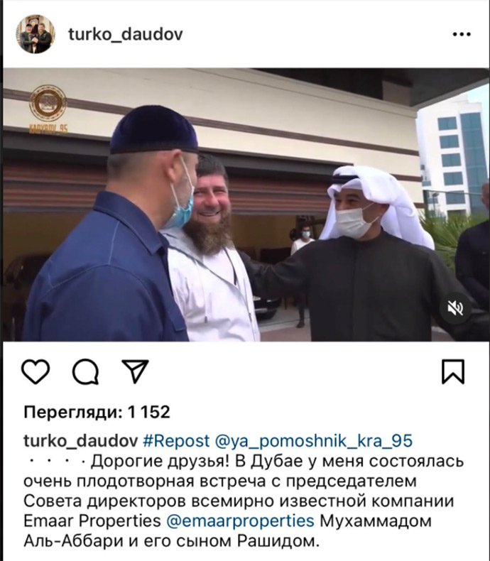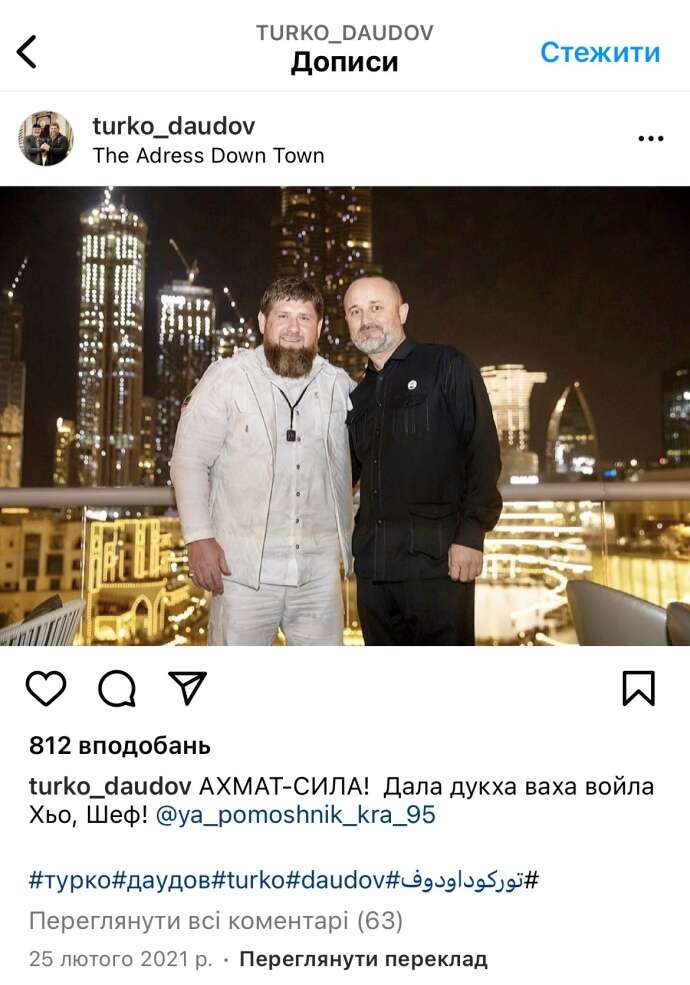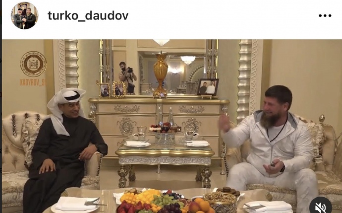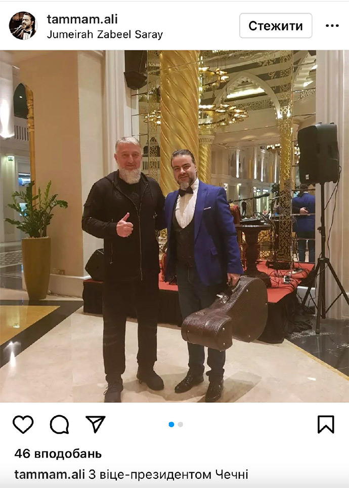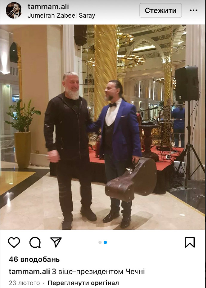 А вот 23-го февраля музыкант из Эмиратов выкладывает в Инстаграме фото, которое он подписал “с вице-президентом Чечни”.