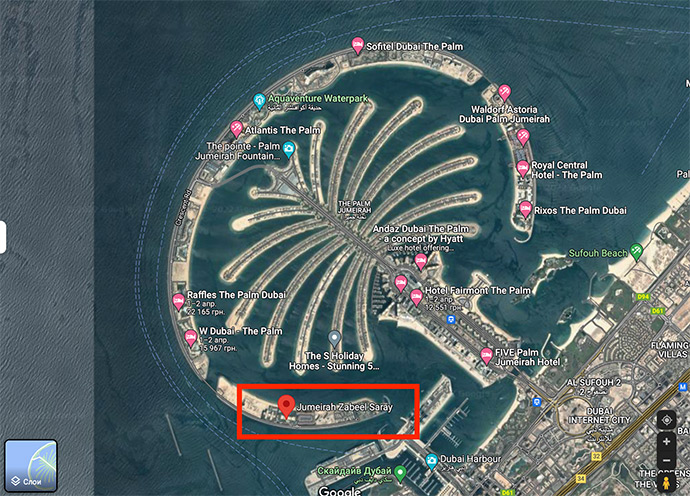 Это фото нам удалось найти по геотегу пятизвездочного отеля, который располагается на известной насыпной пальме Дубая Джумейра. По информации источников “Украинской правды”, именно на территории этого отеля – одна из вилл Рамзана Кадырова.