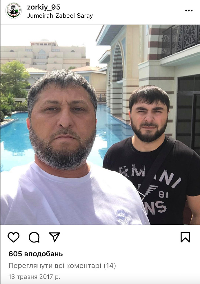 На странице Даудова много фотографий. Вот Даудов с сыном Кадырова Адамом фотографируются у виллы в Дубае в 2021-ом году.