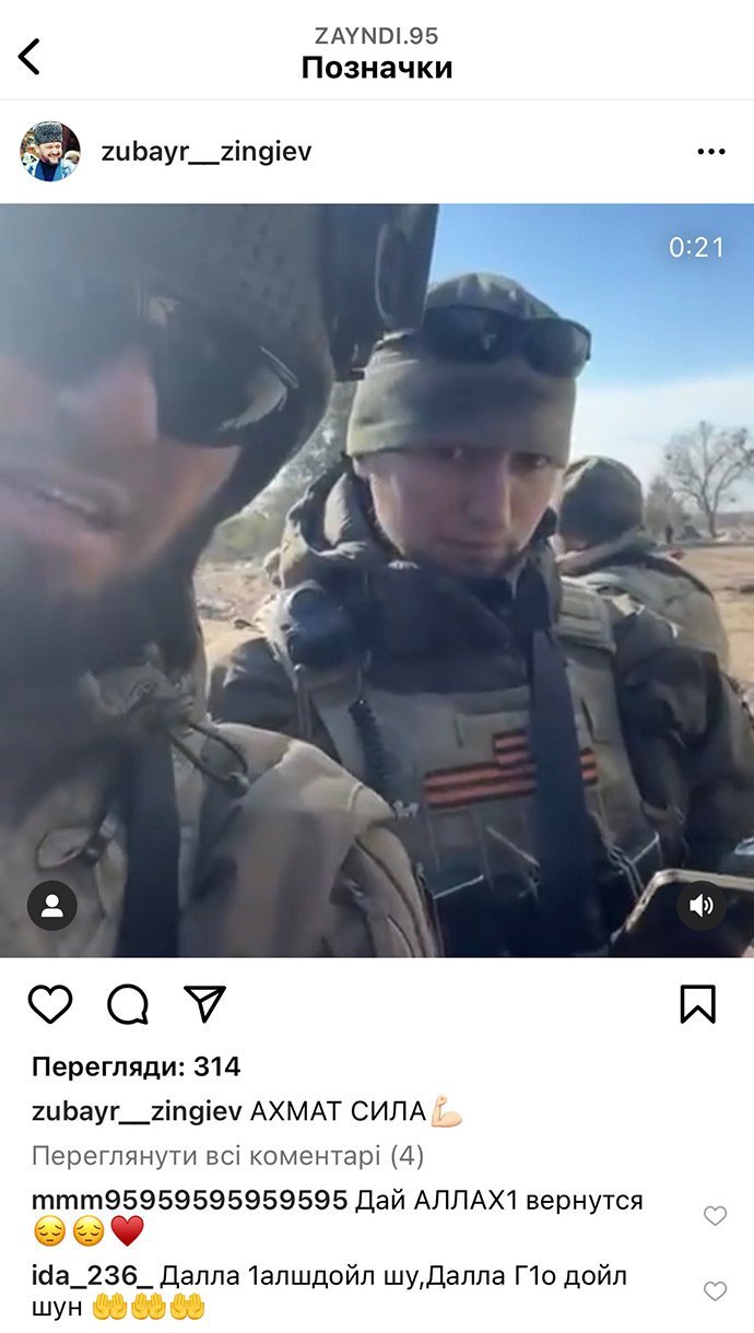Если перейти на профиль Зангева, он пуст. Но если посмотреть фото и видео, где Зангев был отмечен, то можно увидеть, что он сейчас может участвовать в военных действиях в Украине.