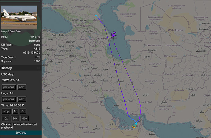 В прошлом году борт Кадырова летал в Эмираты 4-го декабря.
