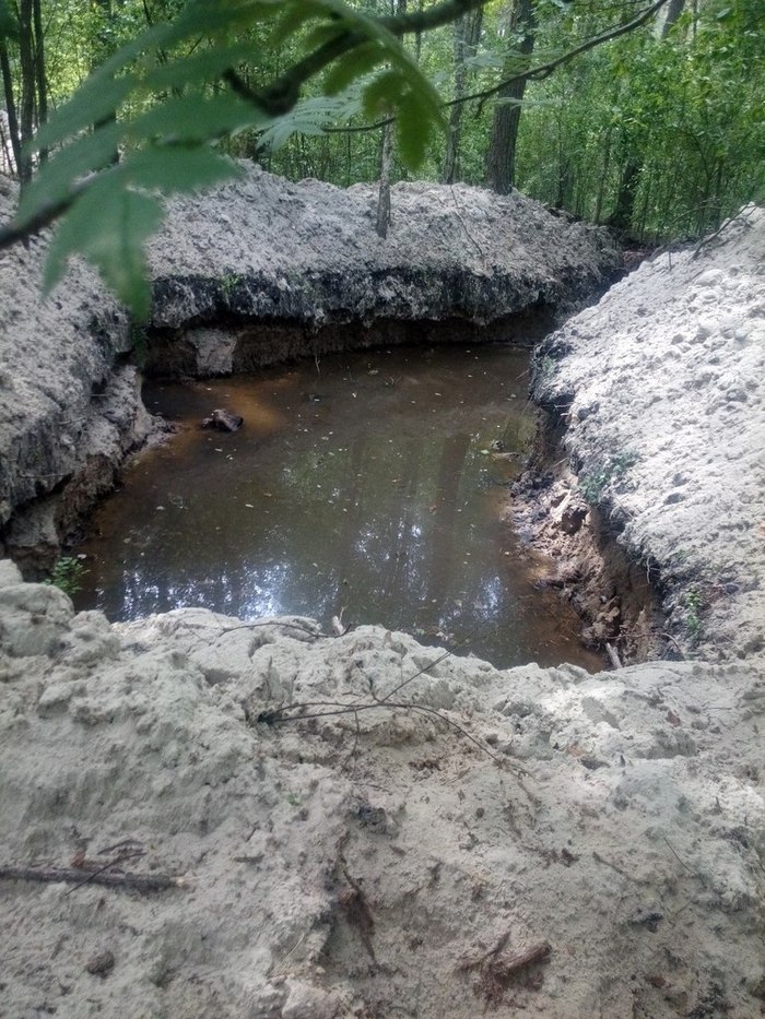 І тут мимовільно згадала, як в грудні ми в лісі також натрапили на п’ять працюючих помп, екскаватор,сотні людей та десятки автівок. Тоді від тамтешніх копачів нам лунали погрози… О собисто дзвонила начальнику обласної міліції, щоб розібрався. Тоді міліціонери нічого не виявили. Та то все, певно, співпадіння!...