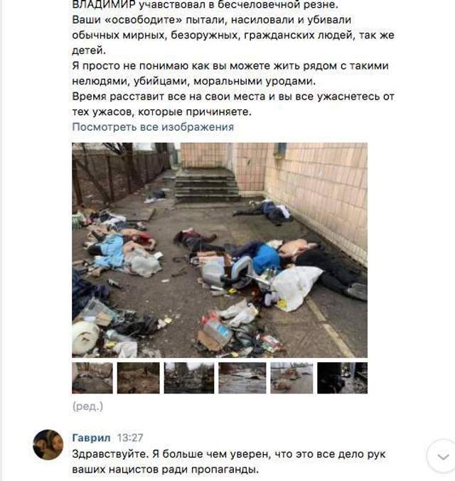 С помощью искусственного интеллекта в Минцифре нашли родственников российских извергов, которые вышли из Киевской области и оставили после себя огромное количество доказательств ужасных военных преступлений. В соцсети им направили фото и сообщения с правдой о зверствах их близких на территории Украины. Реакции на увиденное уже даже не удивляют: