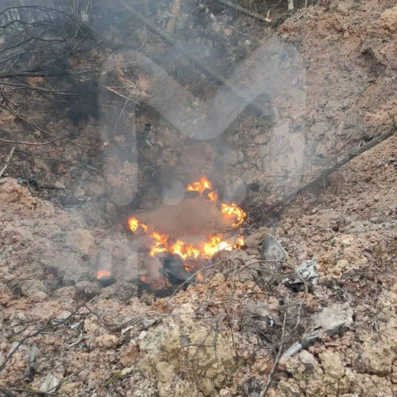 Telegram-канал Mash обнародовал фото с места крушения истребителя. Отмечается, что с катапультировавшимися летчиками нет связи, их ищут.