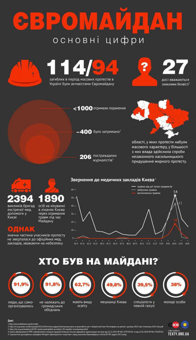 Так было во времена Евромайдана. Уже обновленной власти внезапно понадобились материалы, собранные сообществом «Евромайдан SOS». В Генпрокуратуре сказали: «У нас нет информации, все уничтожено». Ведь с 24 по 26 февраля там во внутренних дворах горели костры из документов. Исчезло, по нашим подсчетам, около 70% информации. Часть была уничтожена в киевских клиниках во исполнение принятого тогда закона об амнистии. Он требовал «ликвидировать все данные, касающиеся участников протеста», и больницы очень оперативно это выполнили. Вот и понадобилось собранные нами, хотя мы и пользовались преимущественно открытыми источниками.