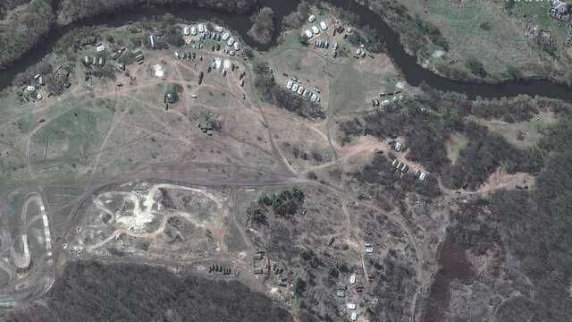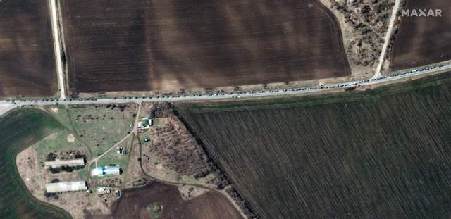 Снимки спутник сделал 11 апреля. Технику Россия перевозила возле населенных пунктов Солоты и Валуйки.