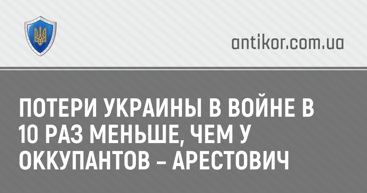 Советник главы Офиса президента Алексей Арестович заявил, что потери украинской армии на войне с Россией примерно в 10 раз меньше, чем у оккупантов.