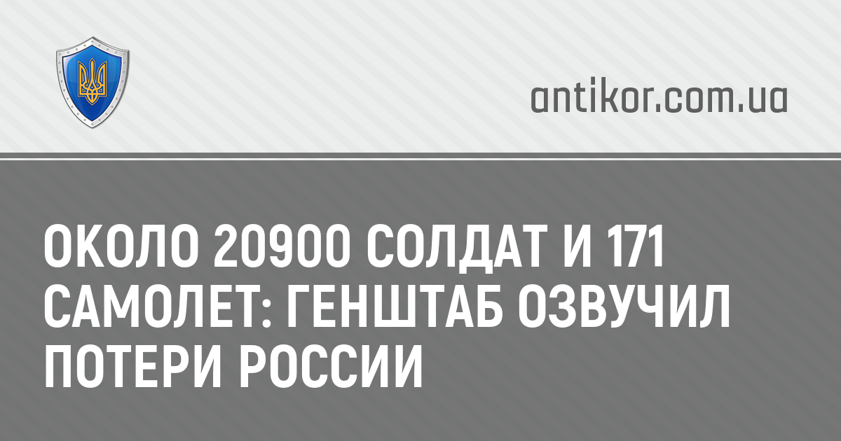С начала полномасштабного вторжения в Украину Россия потеряла около 20 900 своих военных. Также 171 самолет и 815 танков.