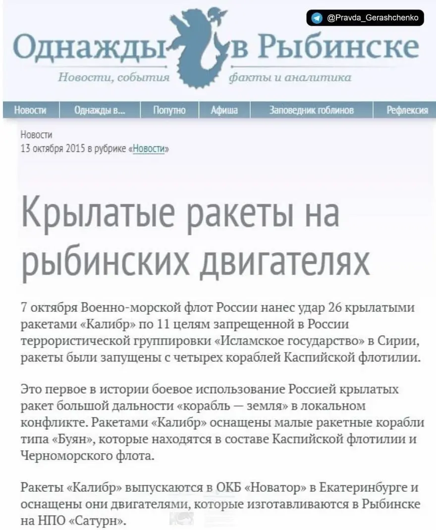 «Какие еще двигатели, несмотря на санкции, будет так живо производить этот завод (ОДК-Сатурн, — ред.)? Для самолетов? Для стиральных машин? Или для «Калибров», информацию, о которой даже не найти на сайте компании, но о чем пишут все местные СМИ», — отметил OSINT-аналітик InformNapalm Антон Павлушко.