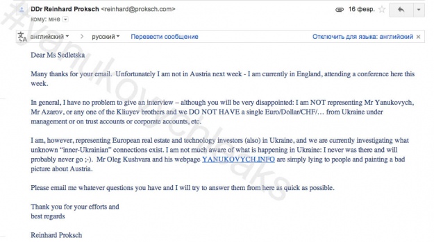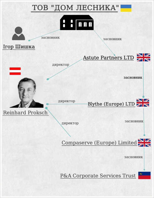 "Острів" належить компанії "Дім лісника". Ця фірма через декілька британських офшорних компаній призводить до приз віща добре відомого австрійського юриста Рейнхарда Прокша, який, втім, у своїй відповіді на наші запитання відмів будь-які зв’язки з Януковичем та "Домом лісника".