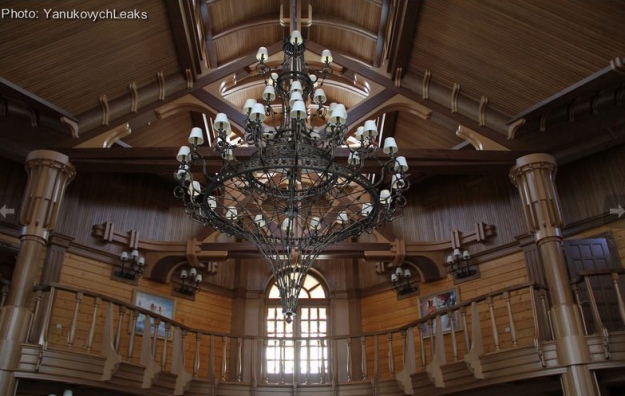 Місце для лазні вибрали підходяще – між водосховищем та невеликою штучною затокою для яхт і катерів. Поруч – вертолітний майданчик і тир. В доволі просторому приміщенні лазні вмістилися дві спальні з гардеробними, душовими, масажними кімнатами, кухня і зала для караоке. Над звуковою системою в залі – велике фото в рамці. На ньому співають Янукович, Ренат Ахметов та Йосип Кобзон.
