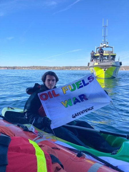 Активисты на красной резиновой лодке привязали свое судно к якорной цепи танкера, пытаясь предотвратить разгрузку 95 тысяч тонн российской нефти. В заявлении главы норвежского отделения Greenpeace Фроде Плейма отмечается, что нефть несет собой основу не только для климатического кризиса, но также и для войн и конфликтов.