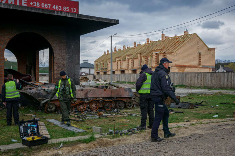 Доказательства собираются для слушания дел в национальных судах и передачи в офис международного уголовного прокурора Карима Хана. В начале марта его офис начал свое расследование в Украине, а в апреле присоединился к совместной следственной группе, созданной Украиной, Литвой и Польшей при участии Евроюста. С начала полномасштабного вторжения Хан дважды приезжал в Украину, в том числе в Бучу, на место массового захоронения мирных граждан. Чтобы рассказать, как украинские правоохранители фиксируют военные преступления, корреспондент издания «Ґраты» отправился в Ирпень с сотрудниками Офиса генпрокурора.