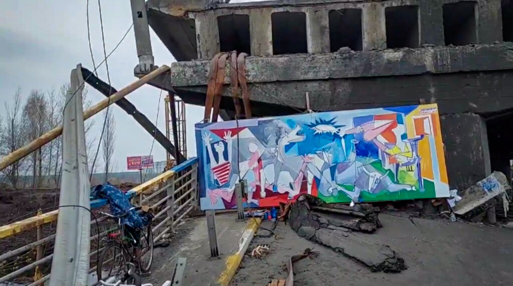 «На пограничном пункте перехода Медика в Польше я нарисовал картину. Мне часто говорят, что она напоминает «Гернику» Пикассо которая посвящена бомбардировке города Герника в 1937 году во время гражданской войны в Испании», — говорит Роберто.