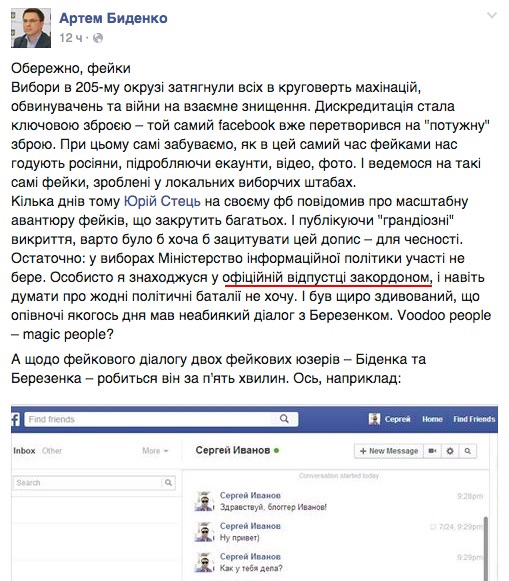 Если верить информации, которую Биденко опубликовал на своей ФБ-странице, то сейчас он находится в официальном отпуске – "закордоном", как он выразился.