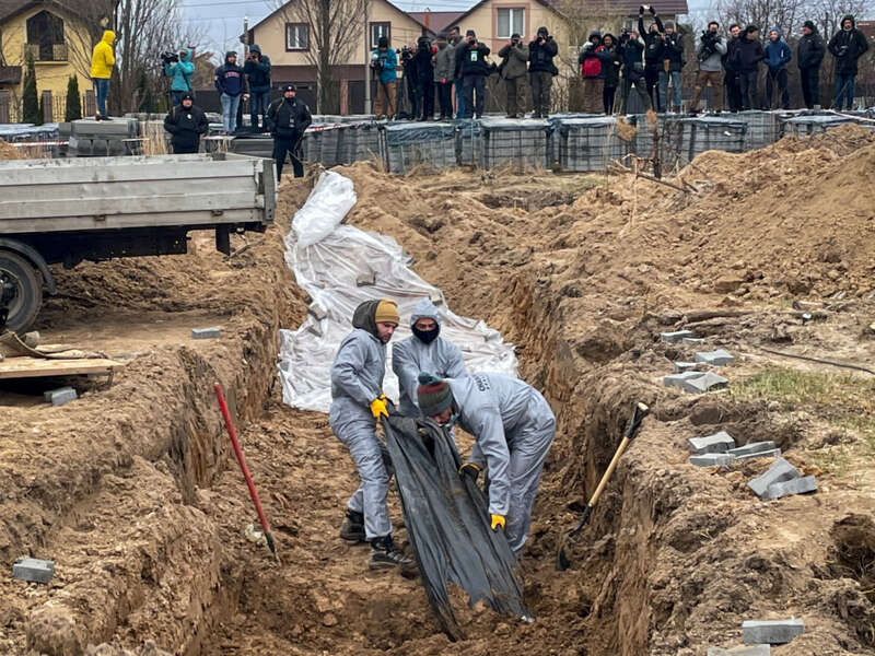 Эксгумацию в Буче посетил Карим Хан, прокурор Международного уголовного суда, который в марте дал старт расследованию ситуации в Украине. Возле церкви Хан сделал заявление о том, что Украина теперь — место преступления. И что у него есть «разумные основания полагать», что преступления, которые совершаются здесь, попадают под юрисдикцию его суда.