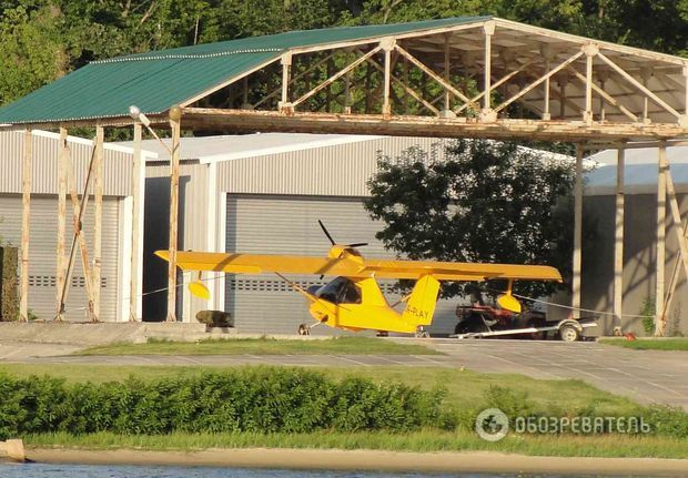 На острове Долобецкий, в километре от пляжа "Венеция", среди густых деревьев расположены современные ангары, в которых находятся, как нашему изданию рассказали в Киевском эколого-культурном центре, по меньшей мере - два вертолета и два гидроплана. Рядом находится и взлетно-посадочная полоса. Владел ьцем аэродрома является частная строительная компании "Кроун" (см.документ http://i.obozrevatel.ua/4/1744442/inner/424375.png). Основателем данной компании, по слухам, является экс-депутат Киевсовета, бывший глава комиссии по вопросам землепользования и градостроительства Андрей Кобринский.