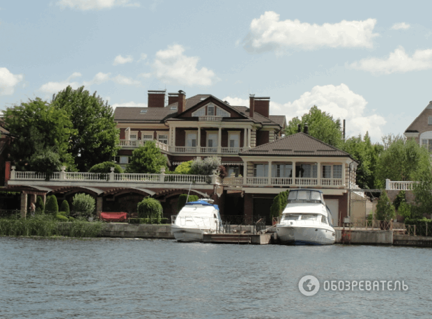 Конча-Заспа. Элитный поселок находится в 15 км от Киева. На въезде со стороны Днепра нас встречают солидные особняки в 4-5 этажей. Берег реки по большей части закован в бетон. Возле многочисленных причалов покачиваются яхты стоимостью по нескольку миллионов каждая. Некоторые хозяева предпочитают пологий выход к воде с возможностью завоза своих плавсредств в гаражи. Владеют всем этим "успешные" украинцы: депутаты, чиновники, прокуроры и бизнесмены.