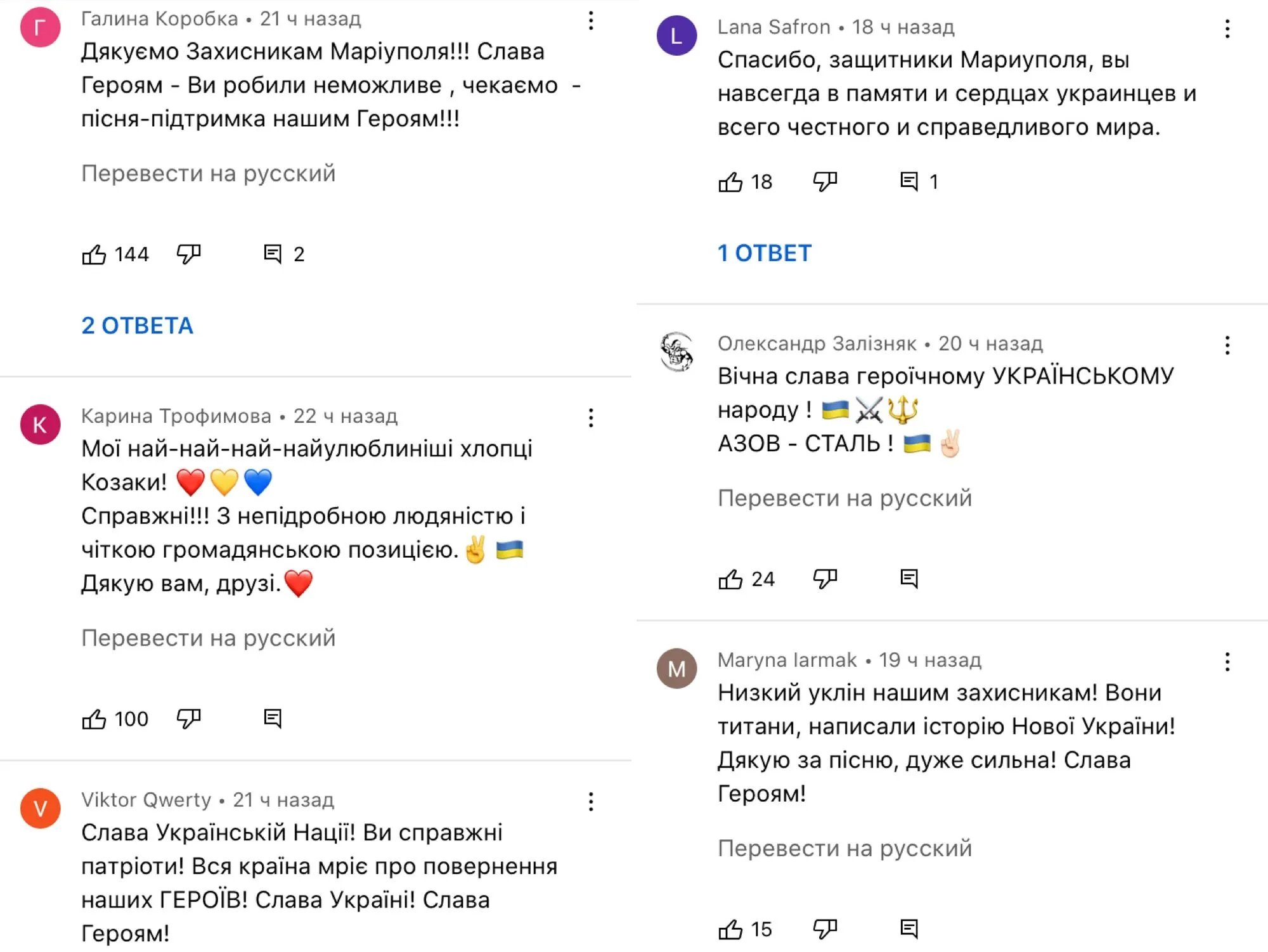 Под видео собрались сотни комментариев, в которых слушатели благодарят рок-группу за новый хит о настоящих героях Украины.