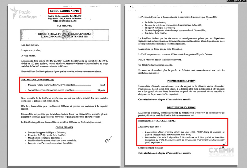 Согласно документам, 99% доли в фирме SCI Du Jardin Alpin принадлежит британской Harecourt Services Limited. Владельцем которой, согласно данным британского реестра, является Вадим Гинер – сын одного из бенефициаров группы Евгения Гинера.