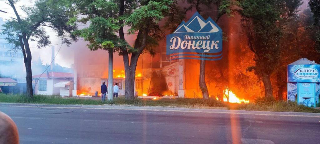 В Куйбышевском районе оккупированного Донецка в результате обстрелов территории завода «Топаз» и данного района горит магазин «Молоко», также продолжает пылать само предприятие.