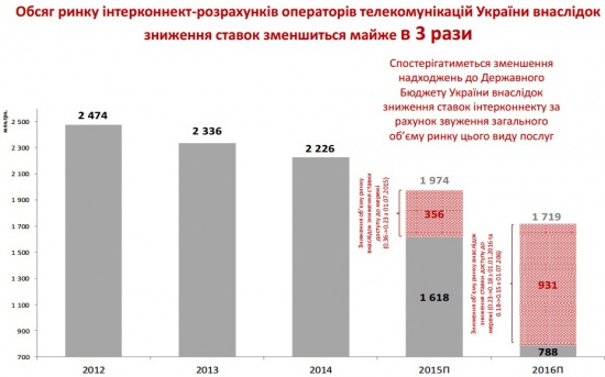 В "МТС-Украина" конкретизируют: весь рынок интерконнекта снизится на 356 млн грн до 1 618 млн грн в 2015 году и еще на 931 млн грн до 788 млн грн в 2016 году.