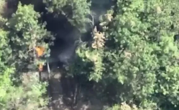 На кадрах видны удары украинских бойцов по расположению скрывшегося в лесу врага. Благодаря точным попаданиям российская техника загорелась и в небо поднялся густой черный дым.