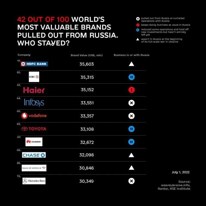 Международные компании при этом не боятся бойкота на украинском рынке. Куда более существенно на них может повлиять позиция клиентов в США.