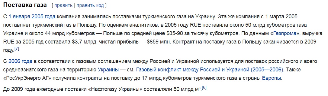 До 2009 года ежегодные поставки «Нафтогазу Украины» составляли 50 млрд м³, «Нафтогаз» рассчитывался за поставленный газ с «Росукрэнерго», а РУЭ – с «Газпромом».