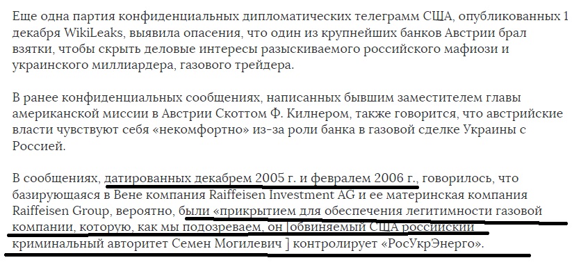 Бывший премьер-министр Украины Юлия Тимошенко также заявила в ноябре 2006 года, что компания контролируется печально известным главарем русской мафии украинского происхождения Семеном Могилевичем.