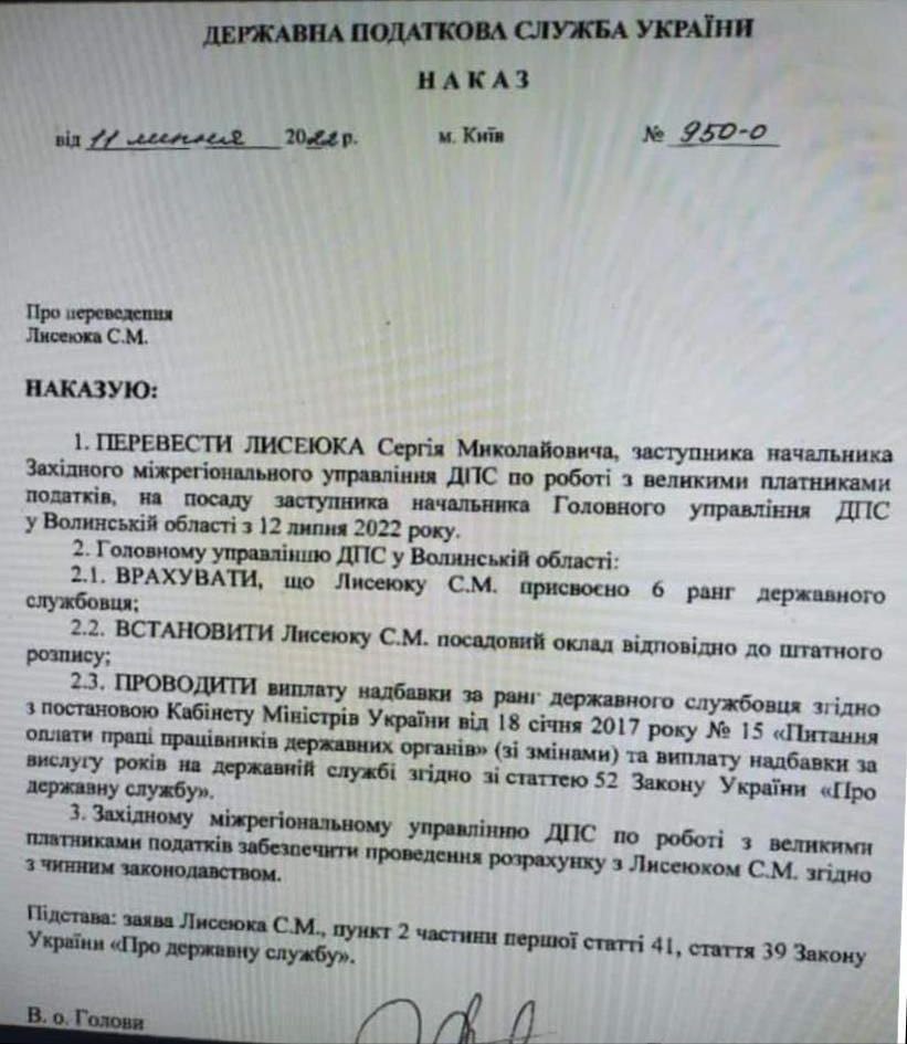 12 липня на посаду заступника начальника податкової на Волинь призначено Сергія Лисеюка.