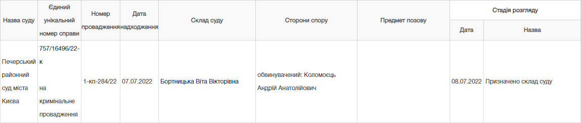 Додамо, що кримінальне провадження було відкрите 15 квітня 2022 року. Його розслідував Перший слідчий відділ Територіального управління ДБР, розташованого у м. Києві. Процесуальне керівництво здійснювала Київська міська прокуратура.