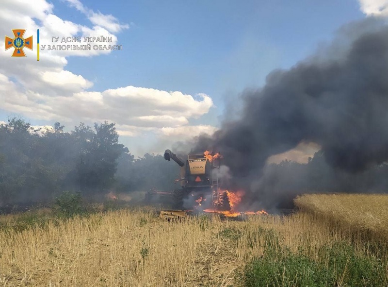Інцидент стався у селі Новопавлівка Пологівського району 19 липня. Комбайн наїхав на міну посеред поля. Водій та його помічник отримали поранення та було госпіталізовані.