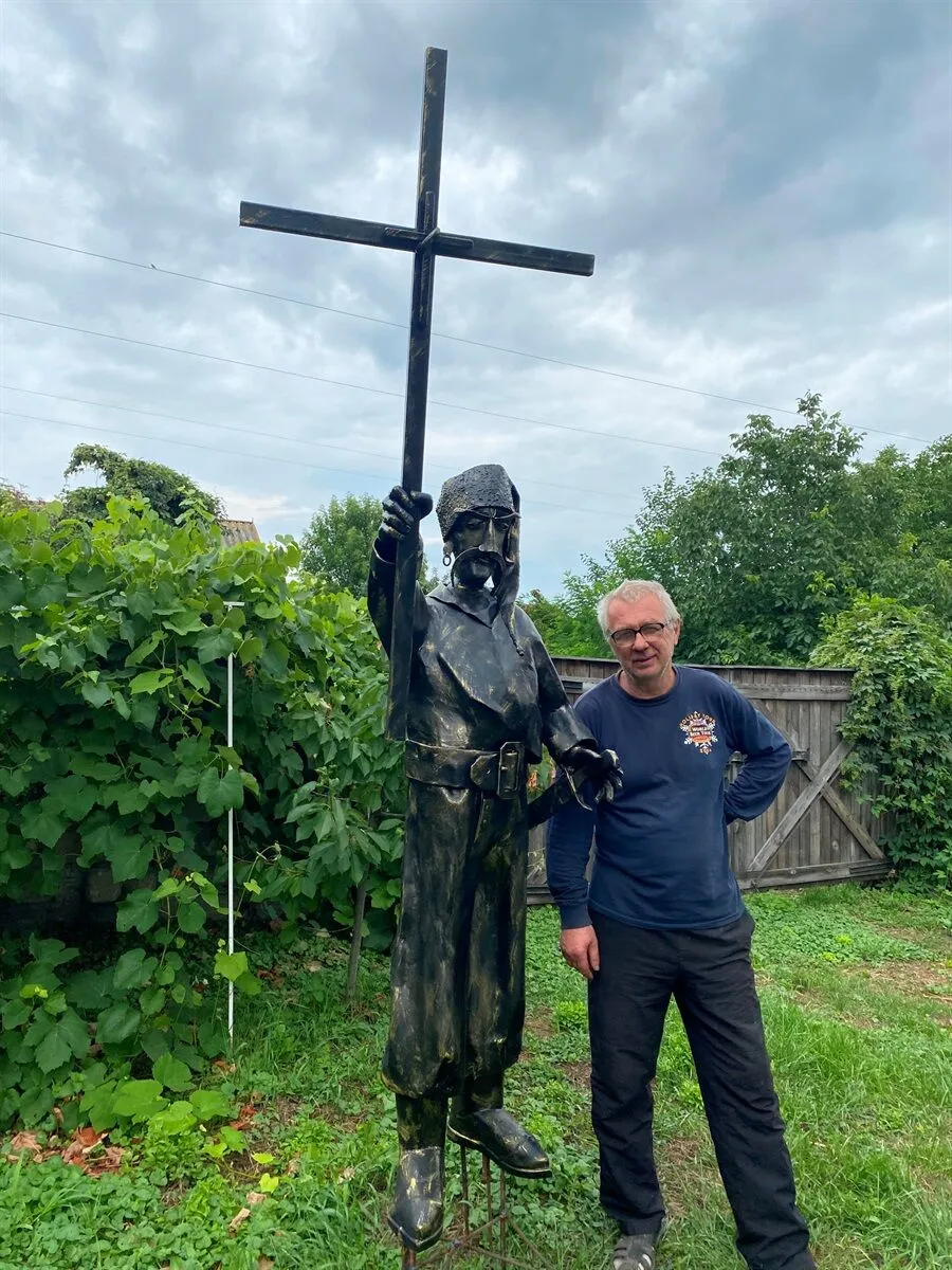 На Київщині коваль із уламків ракети "Іскандер" створив скульптуру козака