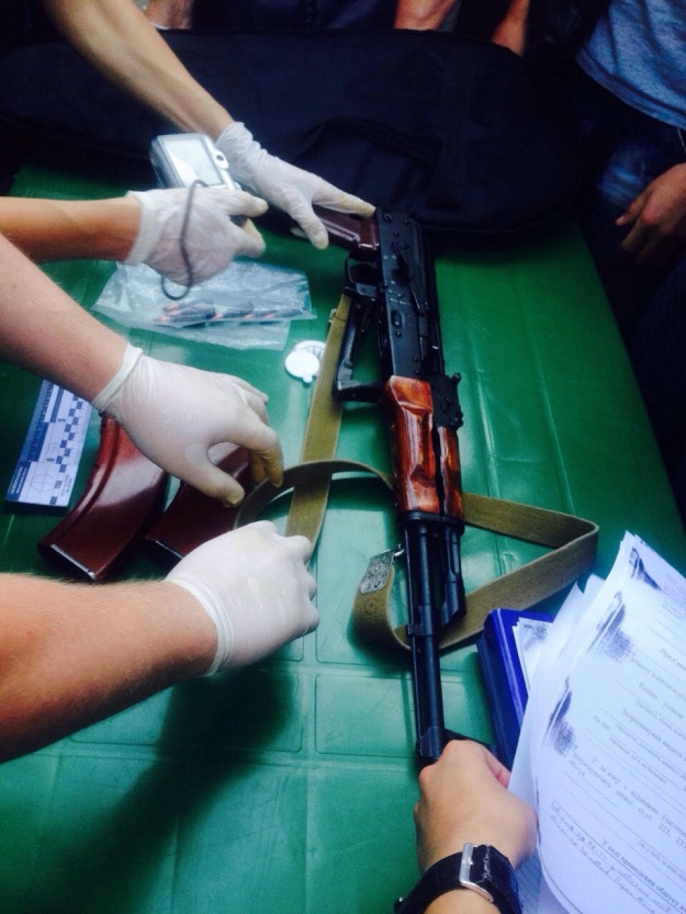 В машине обнаруживают целый арсенал оружия — автоматы Калашникова, карабин и пистолеты. Фото: Роман Николаев