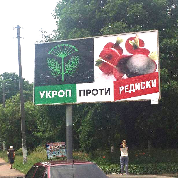 — Кто зеленый УКРОП, это я поняла. Кто красная редиска — ясно. А "Хрен вам. Александр Барабошко" — это к чему? — спрашиваю у Корбана.
