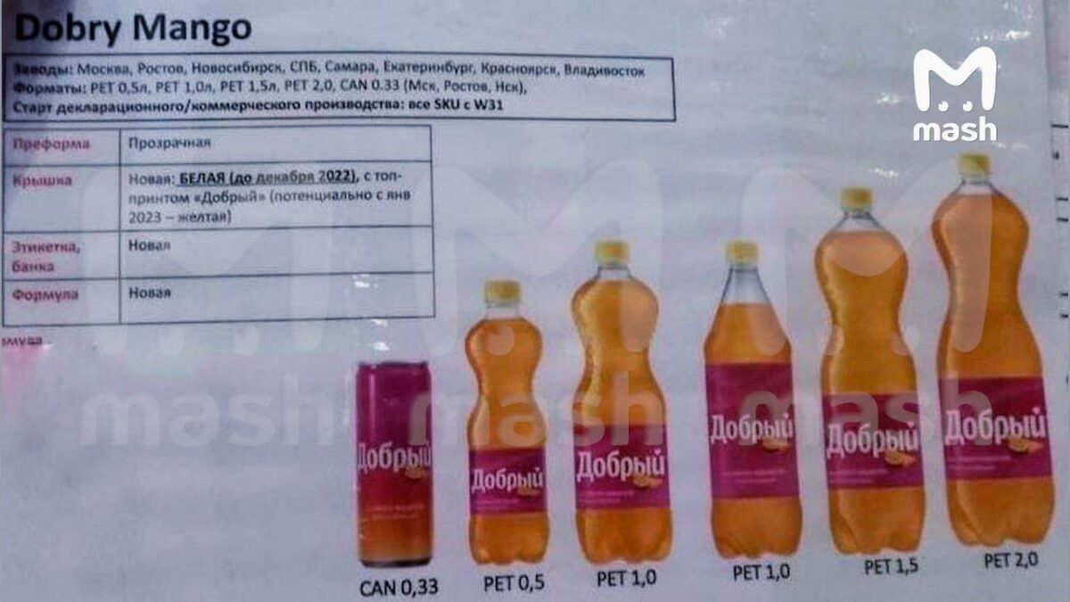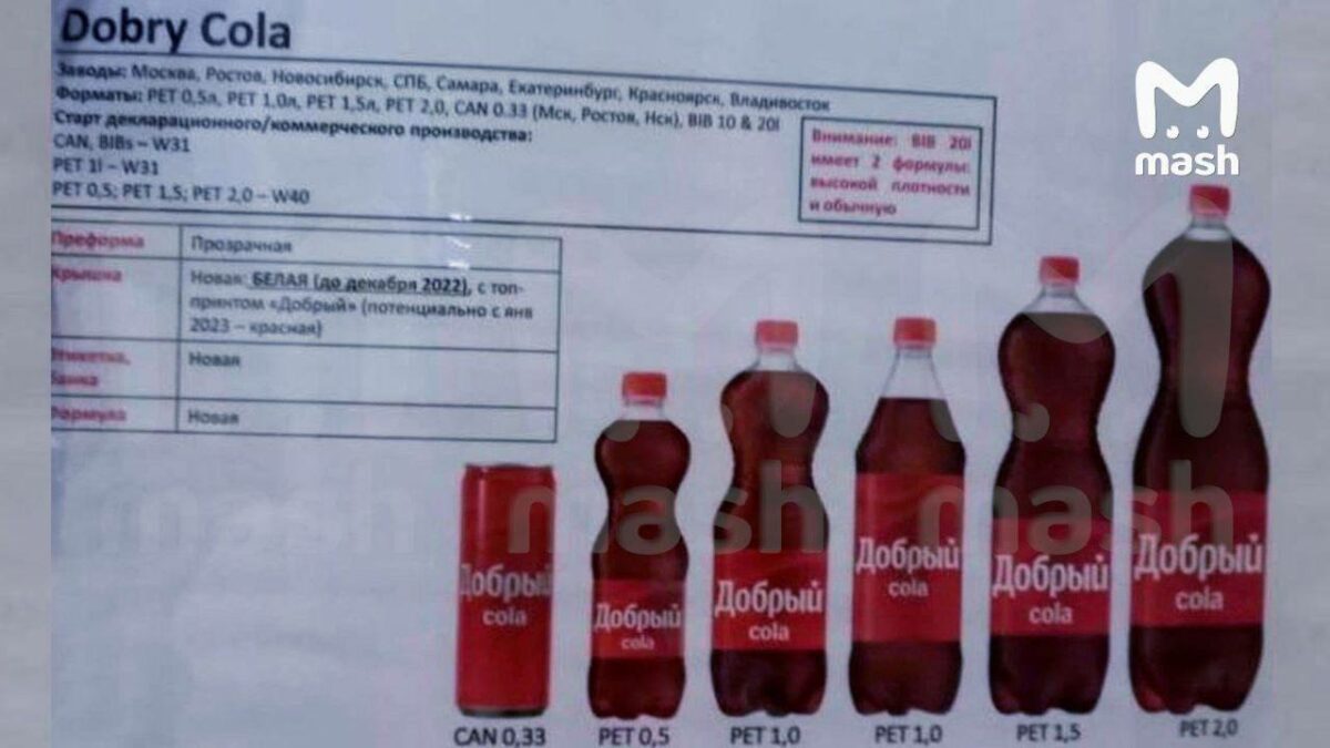 Відтепер на прилавках російських магазинів продаватимуть напій «Добрий Cola». Також зміни торкнулися відомих газованих напоїв Fanta і Schweppes. Вони будуть називатися "Добрий Orange" та "Rich тонік" відповідно. Sprite тимчасово перестане випускатись.
