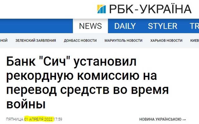 Нещодавно столичний банк «Січ» засвітився ще в одній скандальній новині, встановивши рекордну комісію на переказ грошей, коли в країні триває повномасштабна війна. Примітно, що ця новина була опублікована 1 квітня. Такий собі «жарт» …