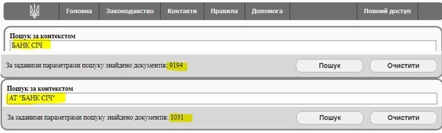 Також, згідно з даними Єдиного судового реєстру України, банк «Січ» налічує понад 10 тисяч судових документів.