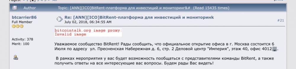Для залучення інвестицій у проект, Старовойтов та Дашут просували «Платформу для залучення інвестицій у комерційну та житлову нерухомість BitRent». Повідомляється, що проект передбачає створення глобальної екосистеми, в якій кожен учасник може інвестувати в об’єкти комерційної та житлової нерухомості купуючи токени, що функціонують на алгоритмі ERC20, для зберігання якого підходять гаманці сумісні з блокчейном Ethereum. 5 липня 2018 року в Москві відбувся перший з’їзд громадян Decenturion на території Росії. У прес-релізі зазначалося, «одним із головних спікерів з’їзду був Дмитро Старовойтов, засновник платформи для збору інвестицій у будівельні об’єкти, розміщені на платформі BitRent». Офіс розташовувався в діловому центрі «Імперія» - ММДЦ Москва Сіті, Краснопресненська набережна, буд.6, стор.2.