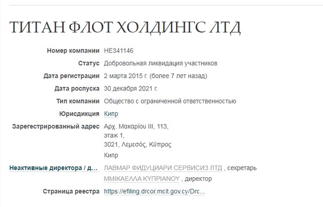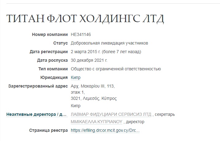 Ми не дарма наводимо всі гіперпосилання вище - спробуйте перейти по них. І ви побачите, що вони неактивні, а вся інформація ретельно підчищена. Кіпрську Titan Fleet Holdings ліквідовано 30 грудня 2021 року.