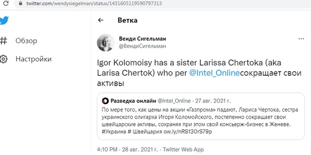 У той же час портфель майна та інвестицій Лариси Черток вказує на те, що він великий: від її ролі в управлінні сімейною консьєрж-службою для надбагатих до її зв’язків із художньою галереєю, яка обслуговує багатих у Старому місті Женеви.