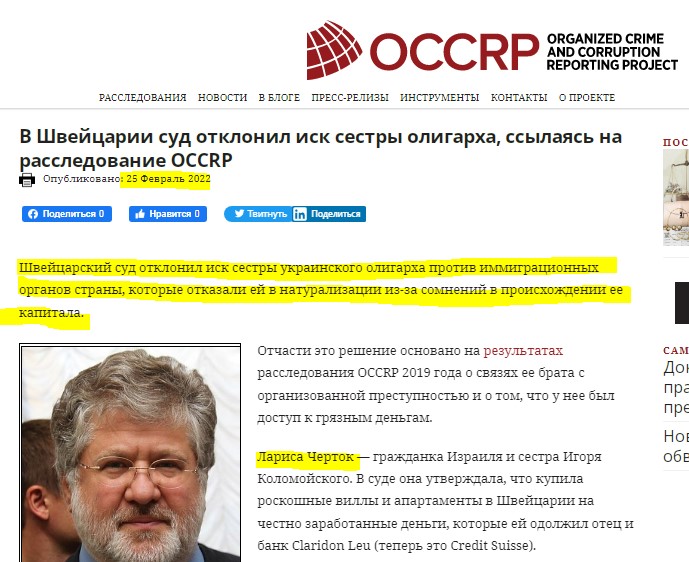 Наприкінці лютого цього року з’явилася інформація , що суд Швейцарії відхилив позов Лариси Черток, обґрунтовуючи своє рішення розслідуванням, яке провела міжнародна організація OCCRP.