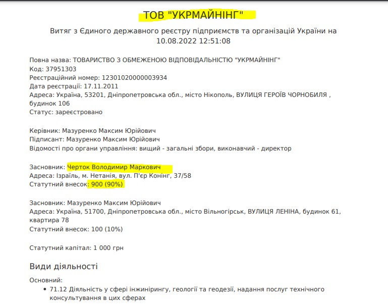 Так, він є співвласником Нікопольського товариства з обмеженою відповідальністю з однойменною назвою «Укрмайнінг».