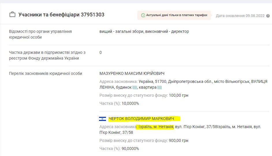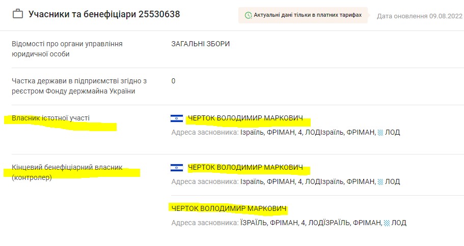 В Україні у В.М. Чертока також свої дві компанії. Обидві входять до 8 списків санкцій.