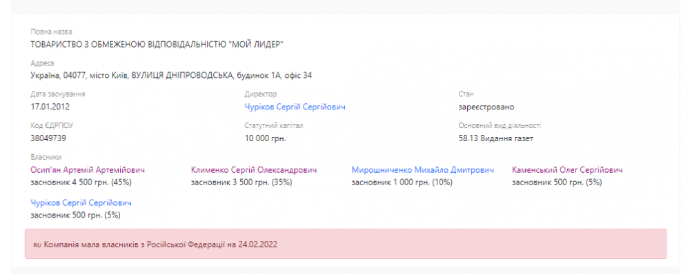 Про це редакцію 368.media стало відомо із реєстру юридичних осіб.
